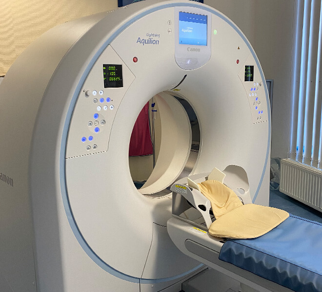 Durch eine 3D Dosismodulation und iterative Algorithmen kann die Strahlenbelastung im Routinebetrieb um 50 % bis zu maximal 75 % gesenkt werden.